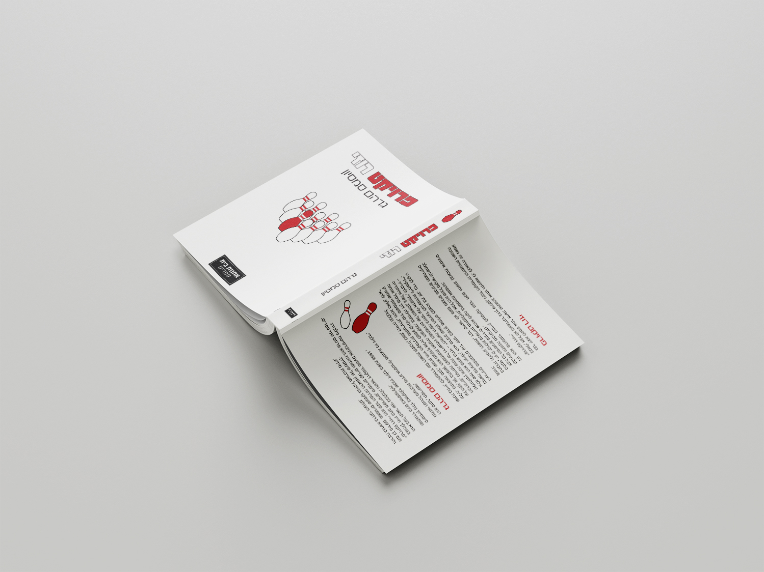 במסגרת פרויקט סטודנטיאלי, התבקשתי לעצב מחדש את כריכת הספר "פרויקט רוזי" כך שתעביר את המסר והעלילה המרכזית של הסיפור. הספר מתמקד בגיבור — פרופסור לגנטיקה המתמודד עם מאפיינים של תסמונת אספרגר — ובמסעו להבין וליצור קשרים רומנטיים. בחרתי להשתמש בדימוי של משחק באולינג, שבו אחד מהפינים שונה מהאחרים, כסמל לשוני, לייחודיות ולחיפוש אחר חיבור אמיתי בעולם שמרגיש לעיתים אחיד וצפוי.