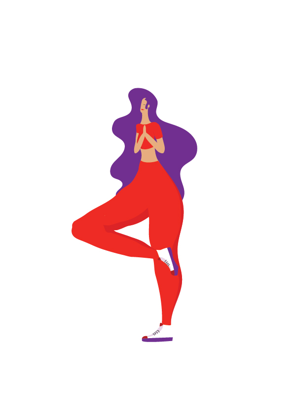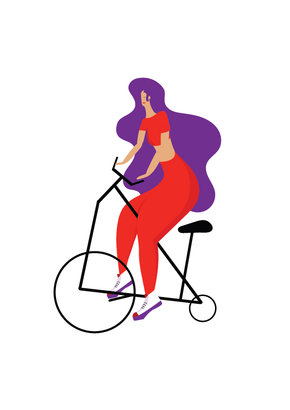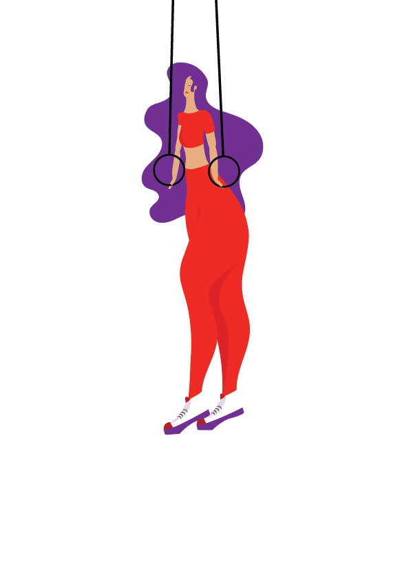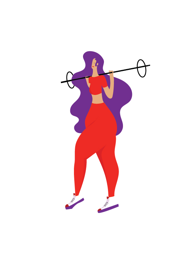 קלפי דמות וקטורית – דמות נשית מרכזית, מאוירת בקו נקי וצבעוני, שמציגה מגוון פעילויות ספורטיביות.