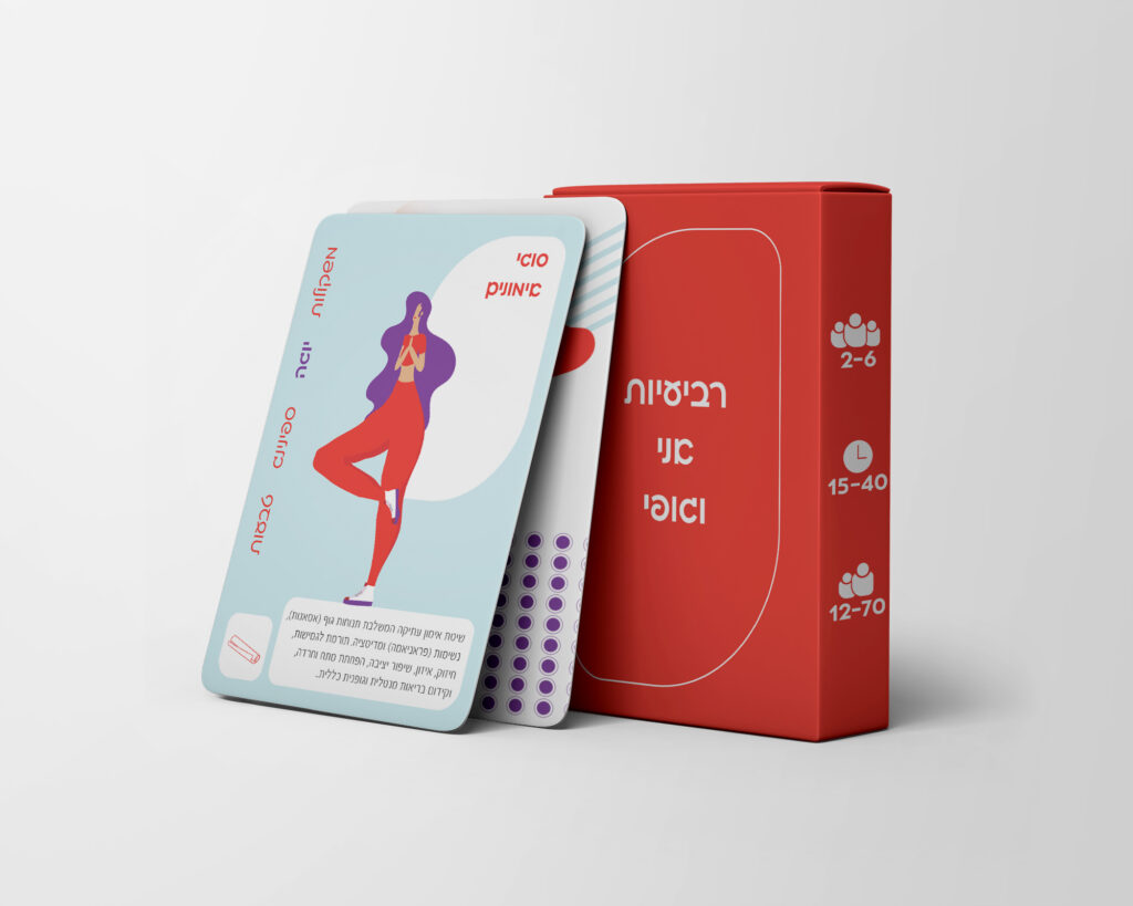 "אני וגופי – רביעיות" הוא משחק קלפים חווייתי שנעשה כחלק מפרויקט לימודים, ומשלב בין איור וקטורי מינימליסטי לבין דימויים ריאליסטיים שנוצרו בבינה מלאכותית. השפה העיצובית נשענת על צבעים נועזים, חיים ובולטים, המתקשרים לעולם הספורט, התנועה והחיוניות.